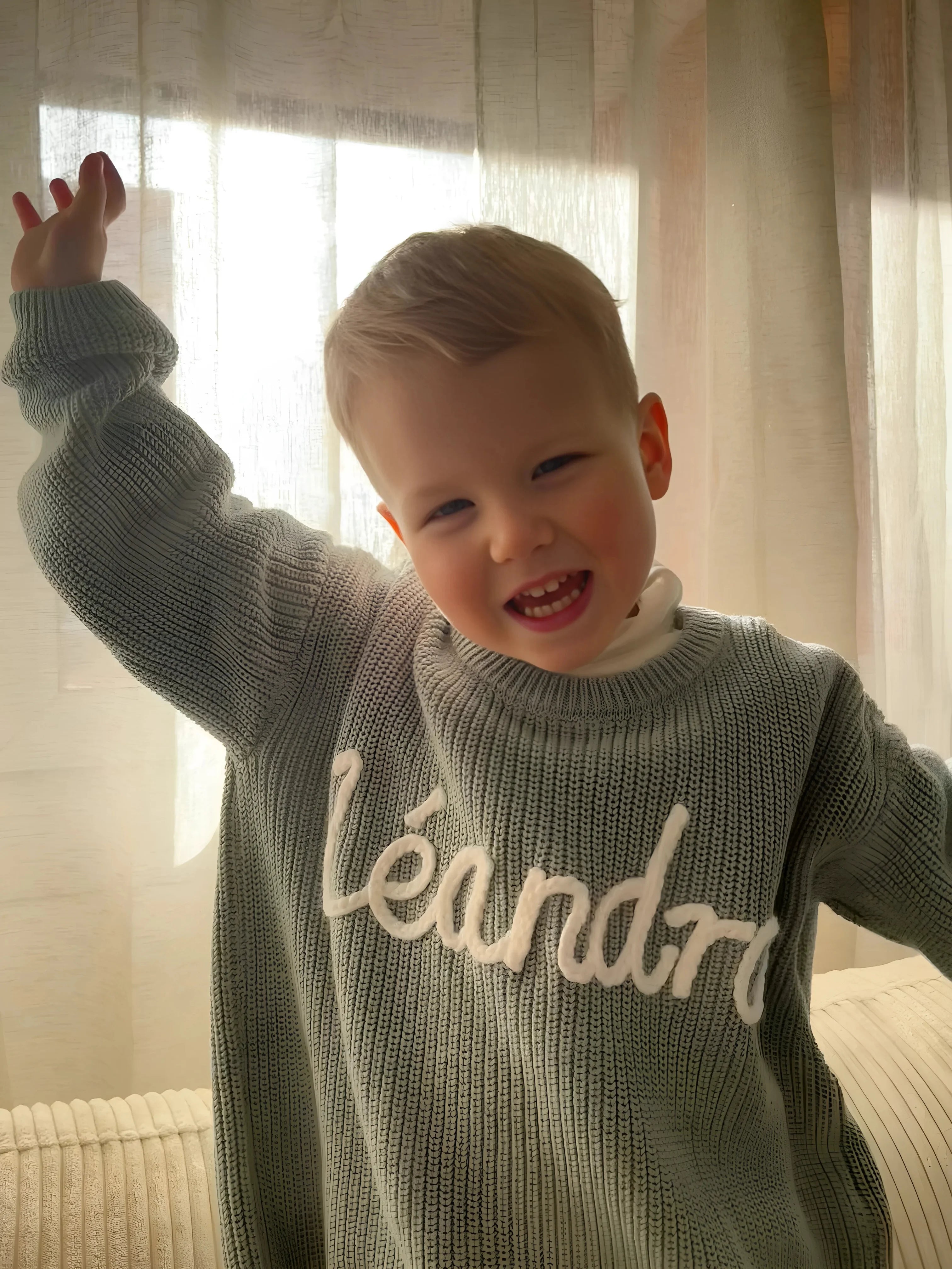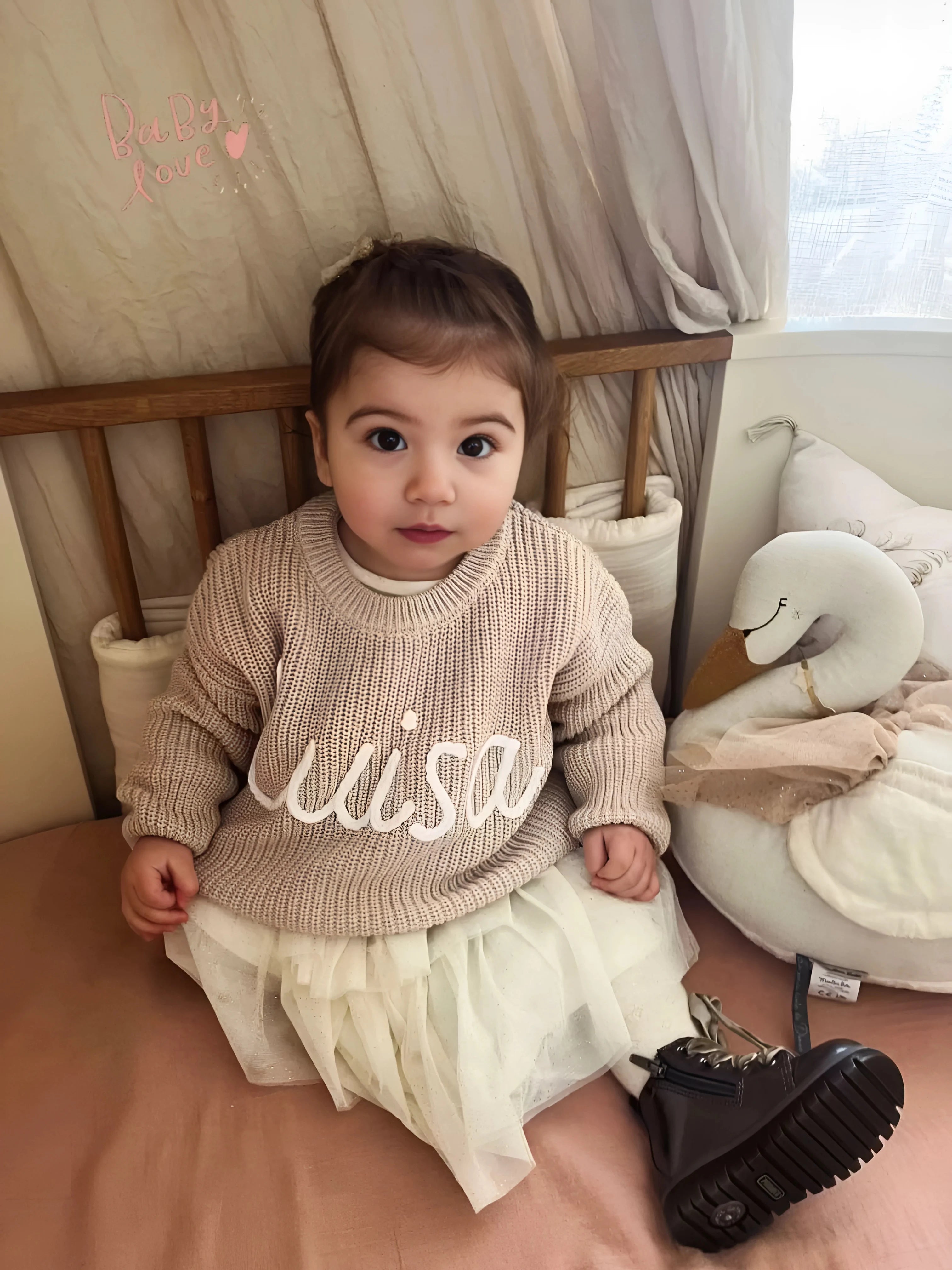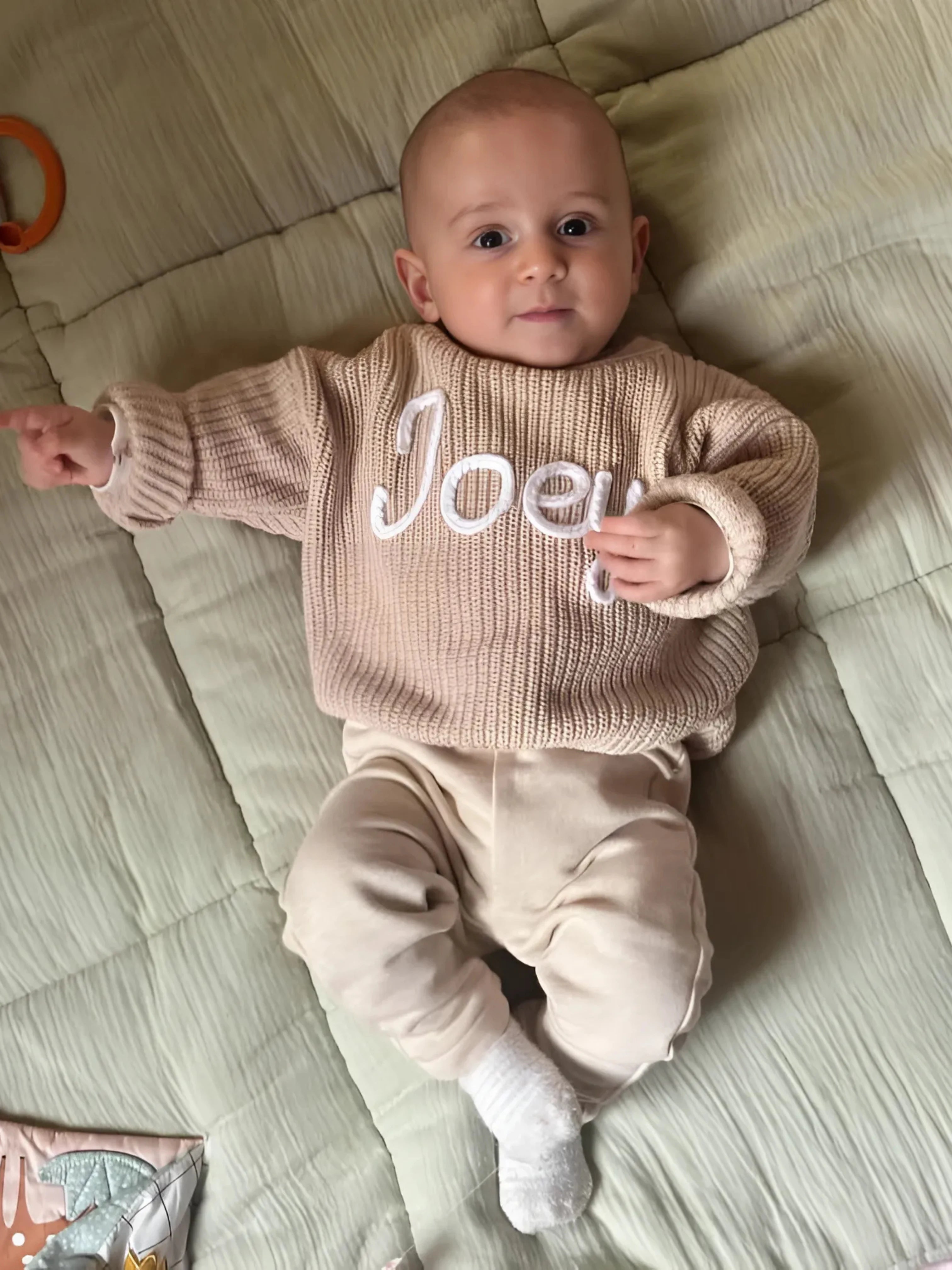 This winter, your baby won't just wear a simple sweater… they'll wear THEIR name, delicately hand-embroidered on a soft 100% cotton knit. Give your child a unique garment that truly keeps them warm and melts parents' hearts.