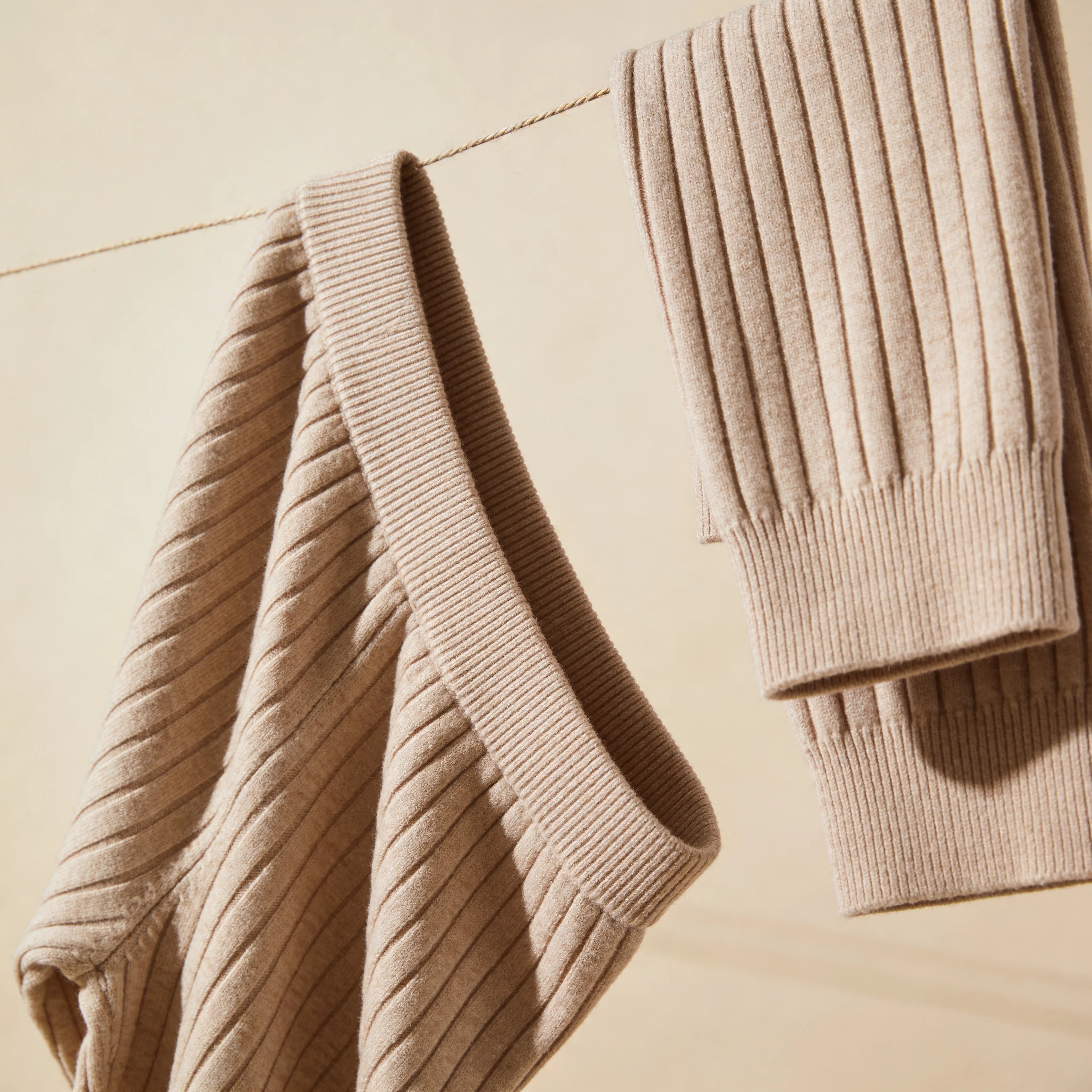 Maille côtelée ultra-douce · Coupe jambe large élégante · Le signal que votre journée est terminée.